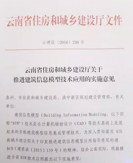 關(guān)于推進(jìn)建筑信息模型技術(shù)應(yīng)用的實(shí)施意見(jiàn) 云建設(shè)[2016]298號(hào)