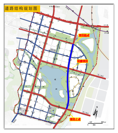 線路走向:道路線形走向?yàn)槟媳毕?,起于?qǐng)遠(yuǎn)街與經(jīng)五路交叉口處,南止于經(jīng)三路南段與緯四路交叉口處,全長(zhǎng)2276.21m。