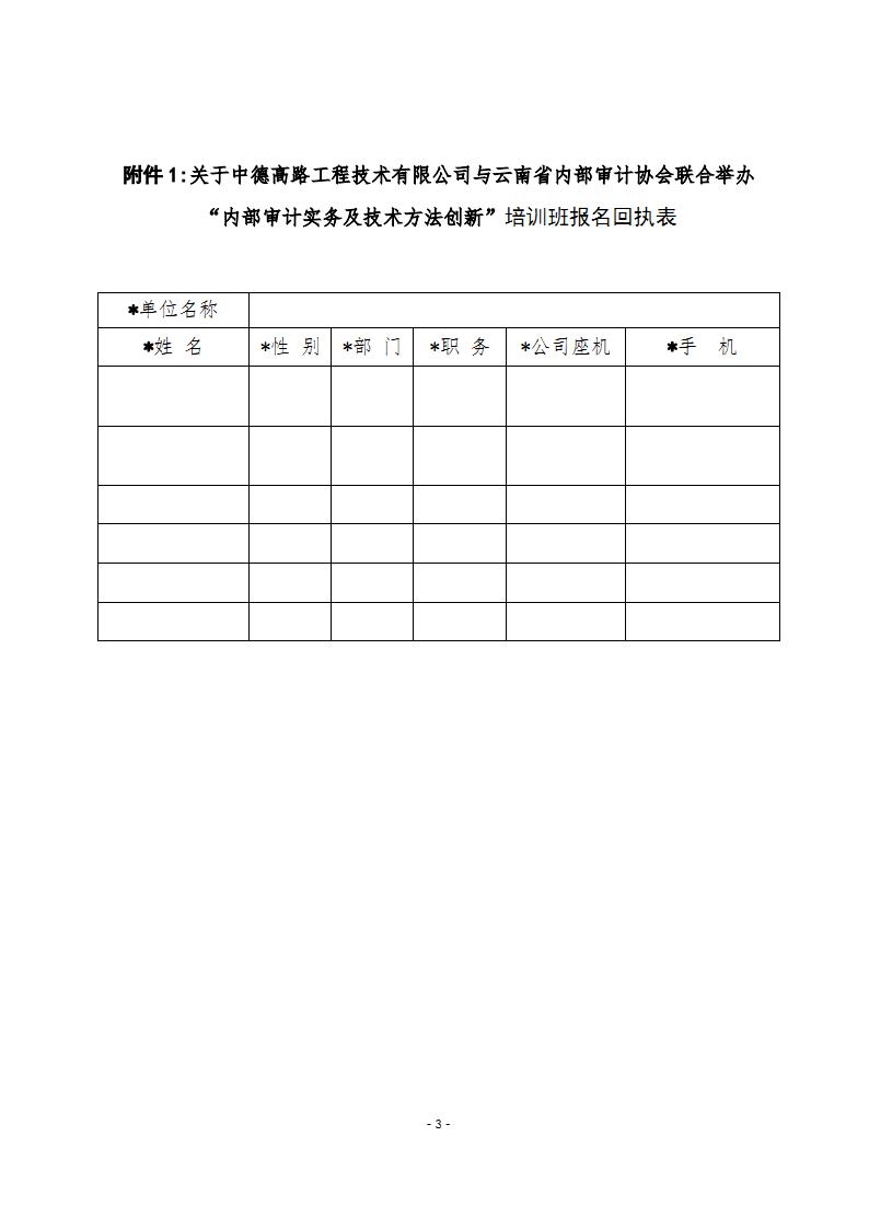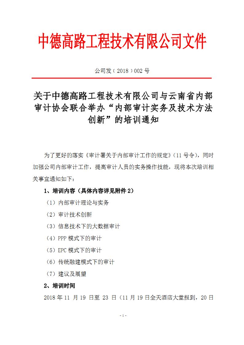 關(guān)于中德高路工程技術(shù)有限公司與云南省內(nèi)部審計(jì)協(xié)會聯(lián)合舉辦“內(nèi)部審計(jì)實(shí)務(wù)及技術(shù)方法創(chuàng)新”的培訓(xùn)通知