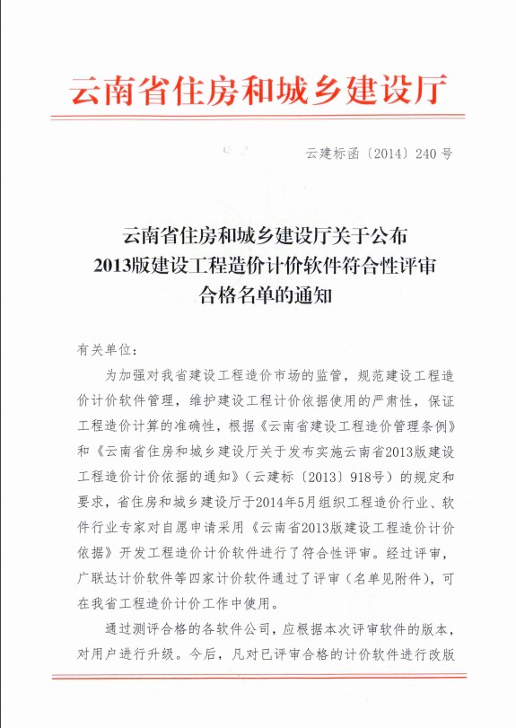 2013版建設(shè)工程造價計價軟件評審合格通知